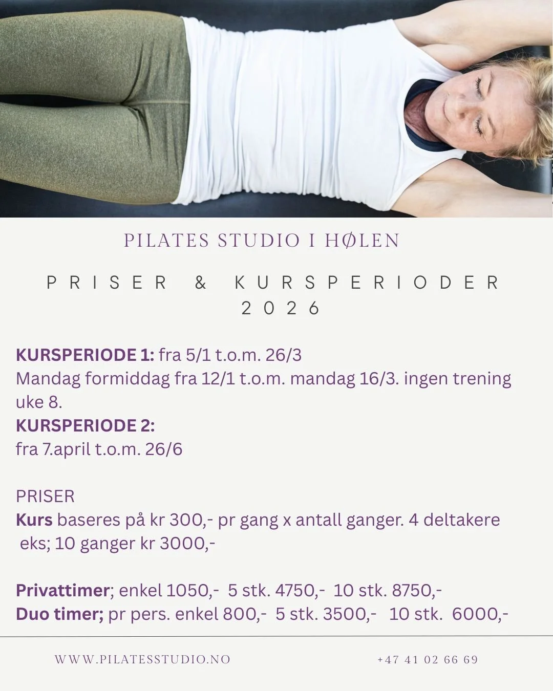 For å booke en klasse og kurs pr nå. bruk hanne@pilatesstudio.no eller tlf. 41026669